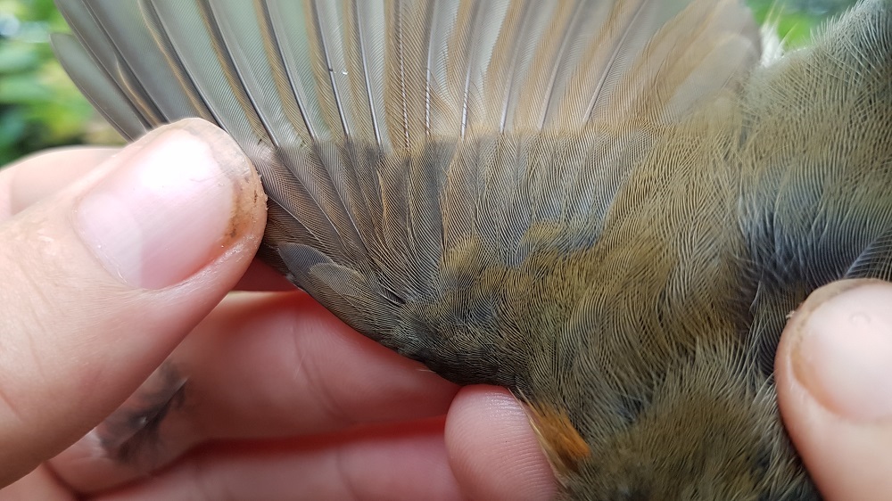 Yderste store dækfjer juvenil, den næstyderste postjuvenil, nr 3 og resterende postjuvenile