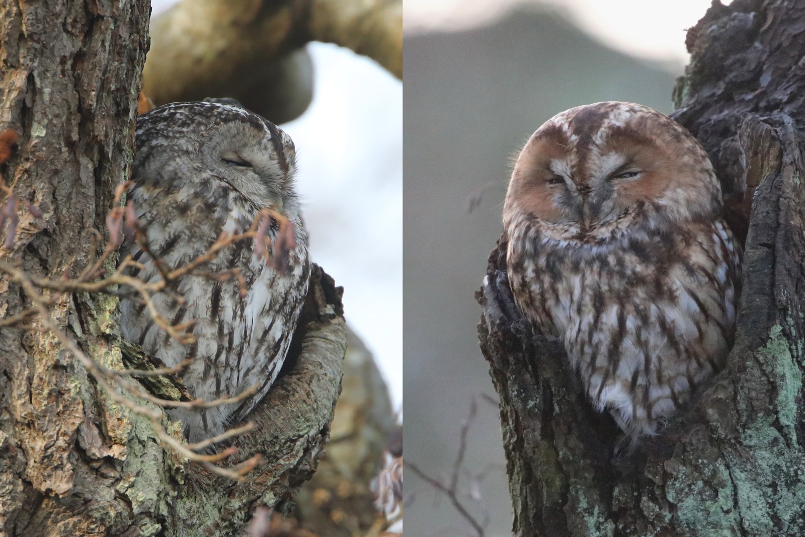 Titel: Parkens grå og rødbrune ugler
