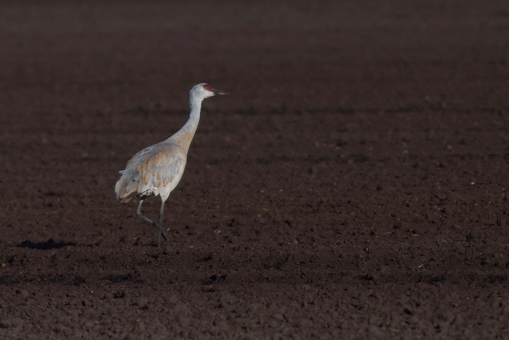 Beskrivelse: Fuglen har opholdt sig i landet siden 27/12-2020 og har nu slået sig ned i Lille Vildmose hvor den siden 27/3-2021 har fulgt trop med en større gruppe ikke ynglende Traner. Fuglens ringe størrelse og kraftige proportioner passer perfekt på Lesser Sandhill Crane (Antigone Canadensis canadensis)