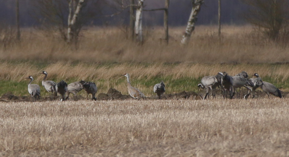 Beskrivelse: Fouragerede sammen med stor flok traner. Prærietranen blev flere gange jaget/truet ud af gruppen.