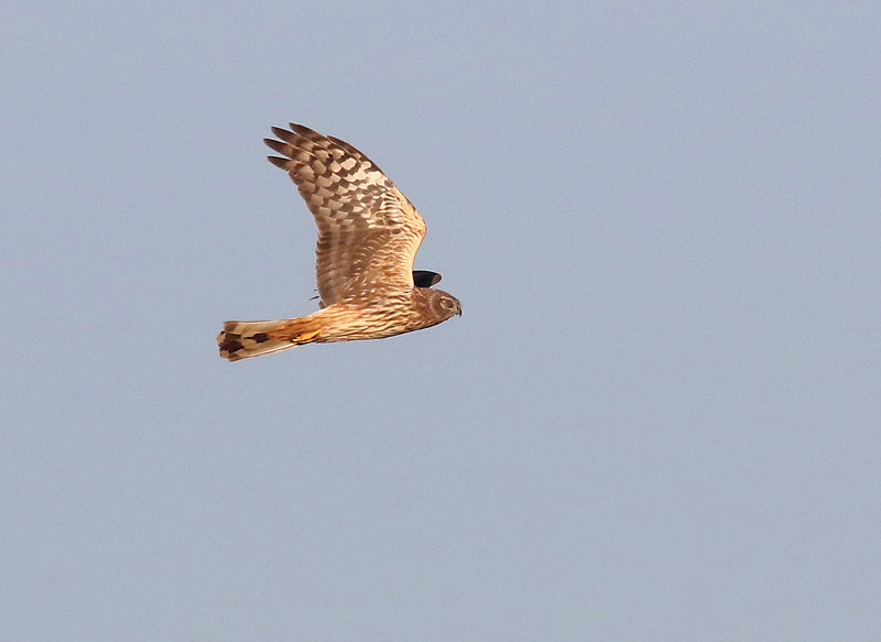 Beskrivelse: 2k han Blå Kærhøg. Fuglene ret svage mønster på de mørkere armsvingfjer siger 2K fremfor adult hun, der ville have haft brede og skarpere afsat sort bagkant på lysere armsvingfjer og bredere, kortere og mere distinkte mørke striber på underkroppen, og det gule øje siger han frem for hun, der har mørke øjne i denne alder.