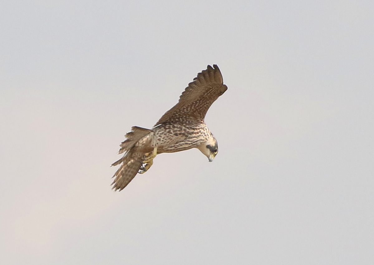 Beskrivelse: Slog på agerhøns, men en gråkrage stod i vejen og jog falken væk.