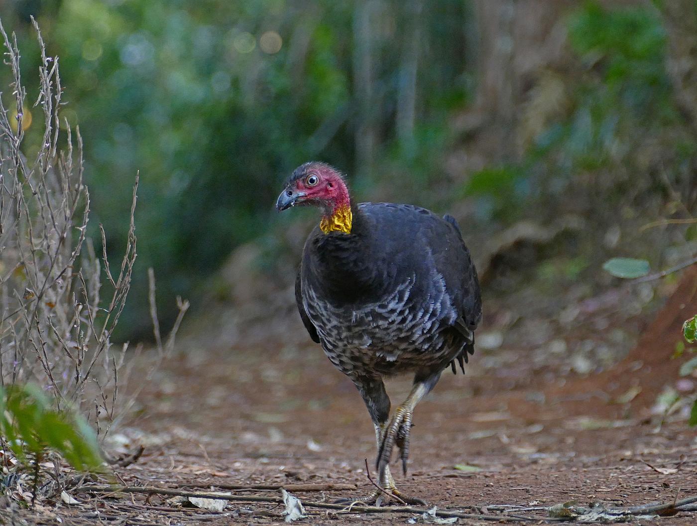 Beskrivelse: Hvor de er vant til mennesker er det ofte dejligt let at få set Australian Brush-Turkey, inklusive deres store 'møddingsreder', hvor varmen fra komposteringen af de blade, som er skrabet sammen til en stør høj, bidrager til udrugningen af æggene.