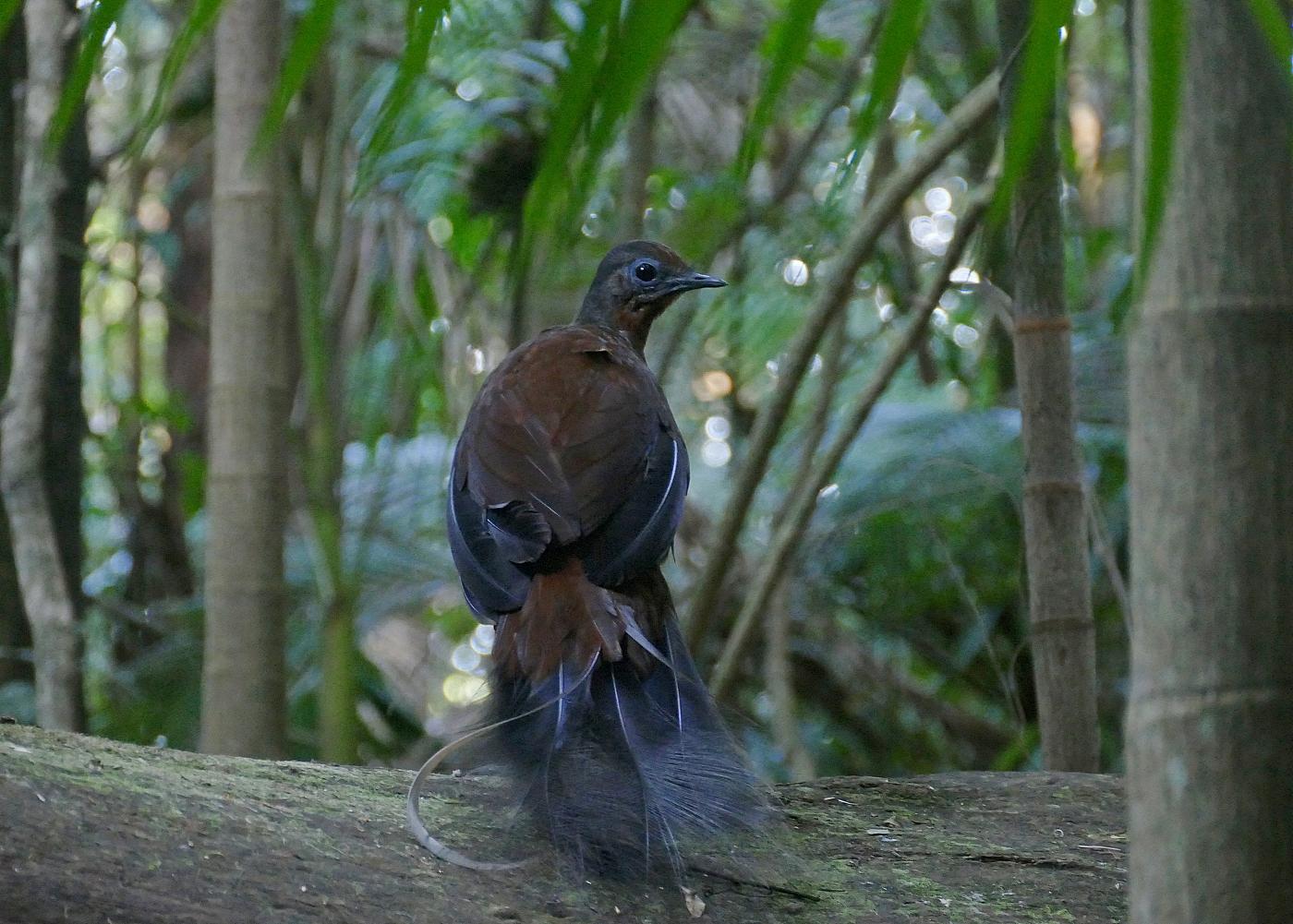 Titel: Alberts' Lyrebird perched on log.