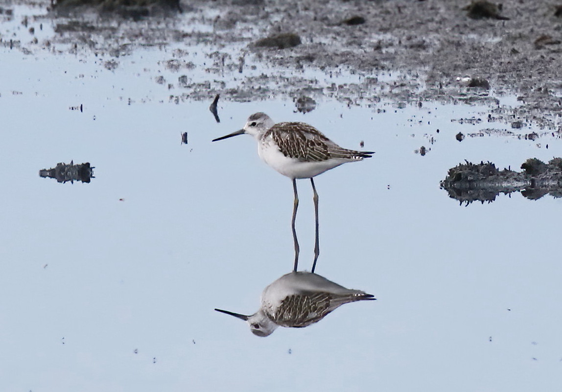 Beskrivelse: Denne fine 1K-fugl fouragerede i de lavvandede småsøer på sydsiden af stien ud til fugletårnet på Nivåtangen, bl.a. i selskab med Hvidklire, Tinksmed, Svaleklire og Mudderklire.