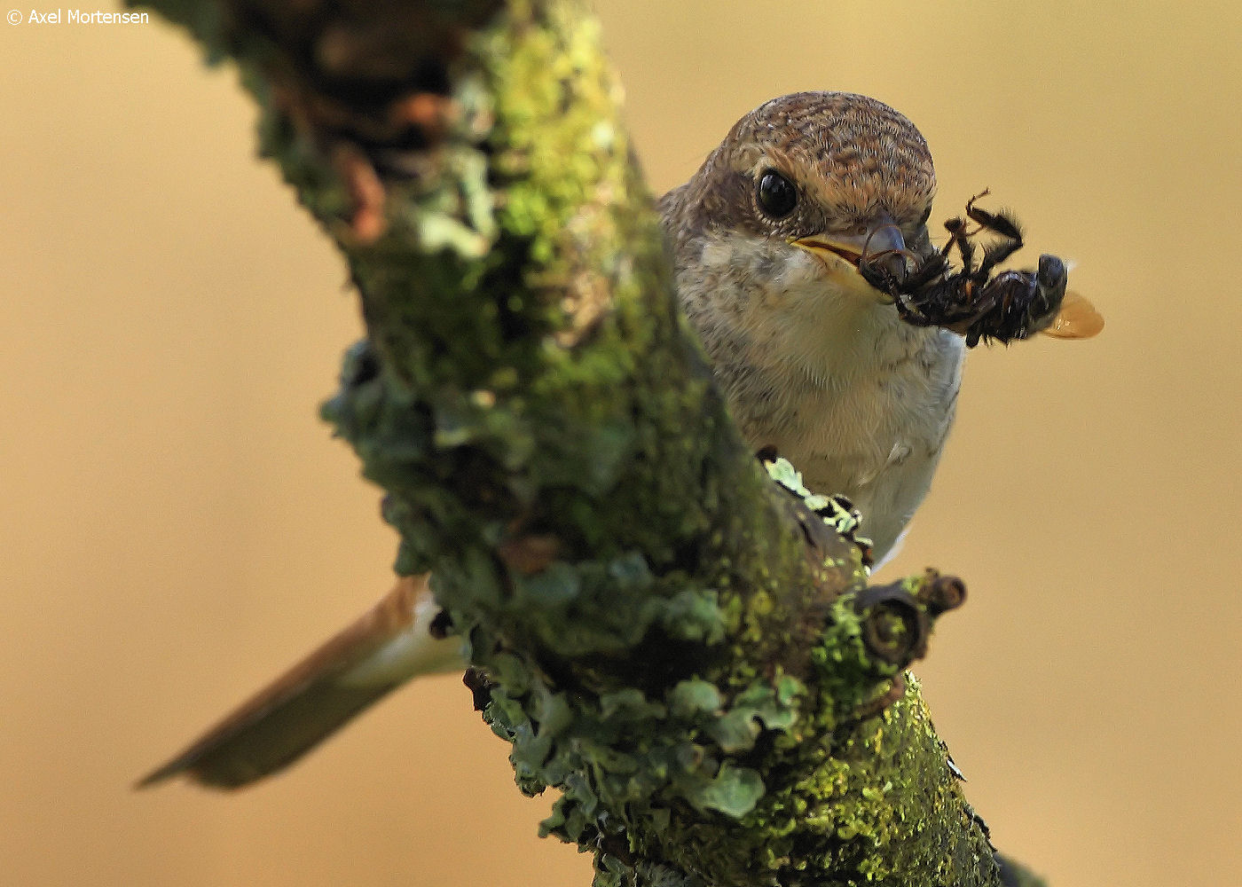 Beskrivelse: Et af de to par rødryggede tornskader i Hellebæk Kohave har fået 5 unger. Det andet par er ikke observeret med unger.