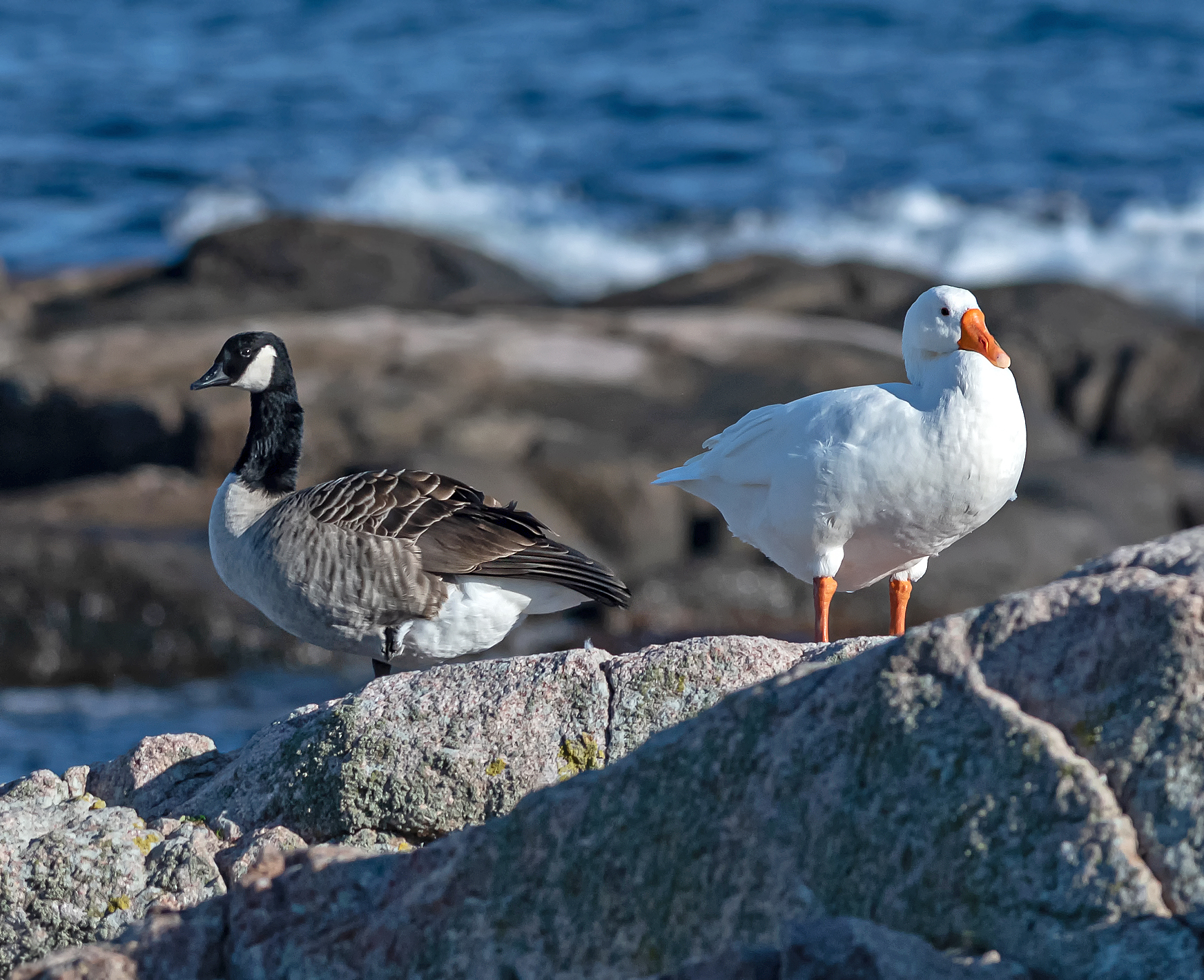 Beskrivelse: Gennem meget længe er Canadagåsen blevet set holde fast sammen med en hvid vist Tamgås på ChrØ. De ses altid så hyggeligt sammen på skærene, lidt spændende hvordan deres unger evt ville se ud en dag , hvis de kan yngle.