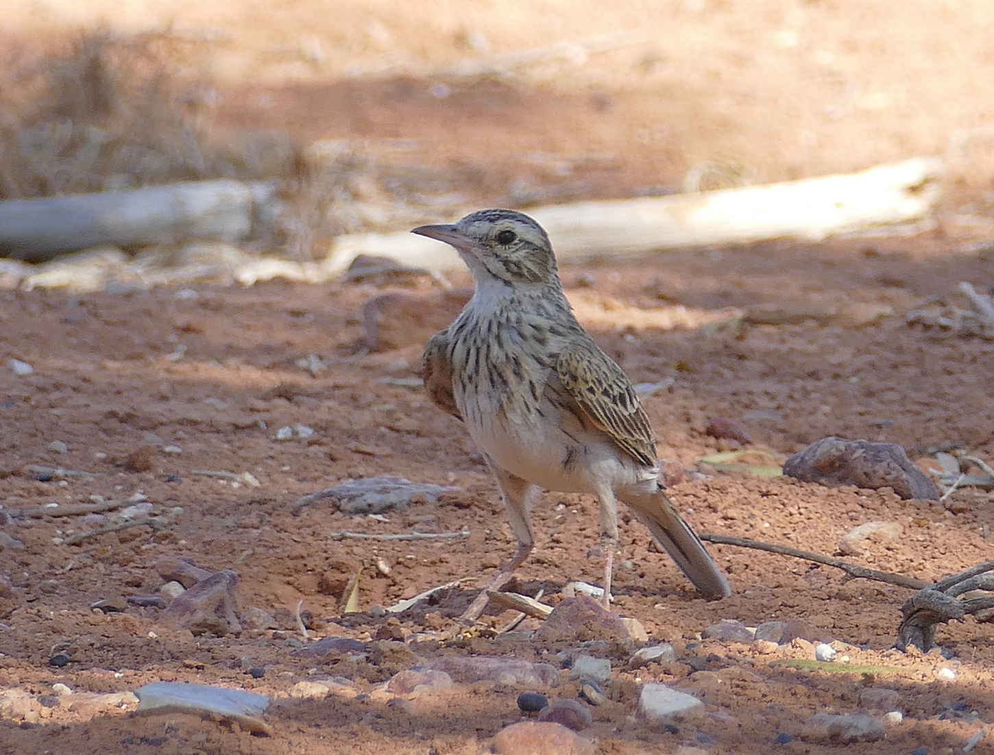 Beskrivelse: På en skoldhed dag i den australske outback søger Australian Pipit også ly i skyggen.