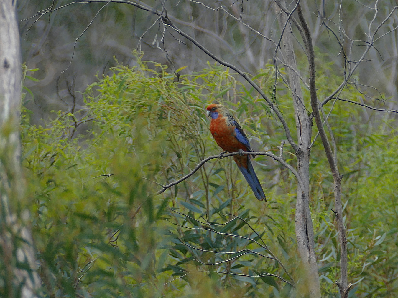 Beskrivelse: Crimson Rosella findes i flere farver i artens udbredelsesområde i det sydøstlige Australien. Fuglene omkring Adelaide i South Australia er mest i den orange gruppe, med varierende mængder af gult i fjerdragten.