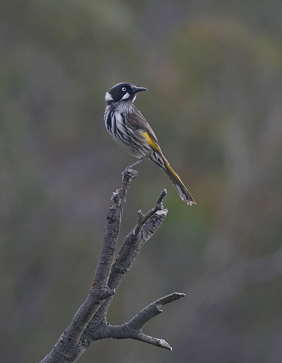 Beskrivelse: New Holland Honeyeater er ofte den mest almindelige Honeyeater i kystnære områder af det sydlige Australien.