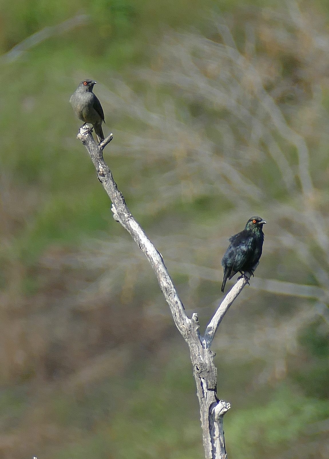 Titel: Pair of Striated Starling perched in tree.