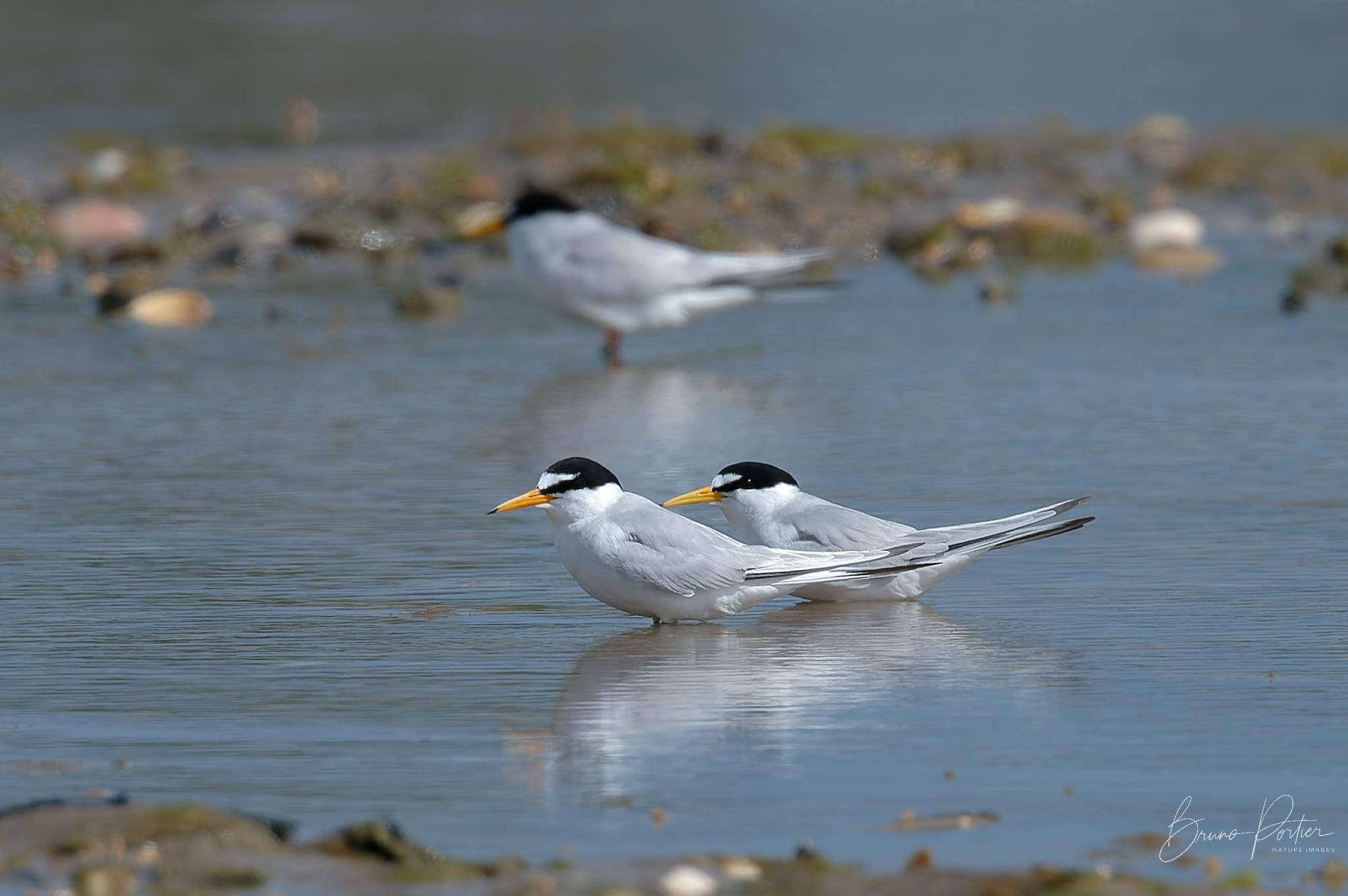 Beskrivelse: Least Tern (right bird) and Little Terns