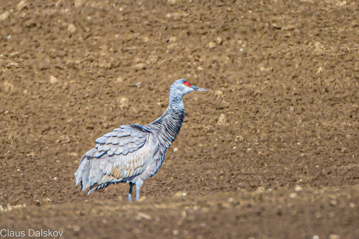 Beskrivelse: Prærietranen opholdt sig på en nysået mark i max 1 time.