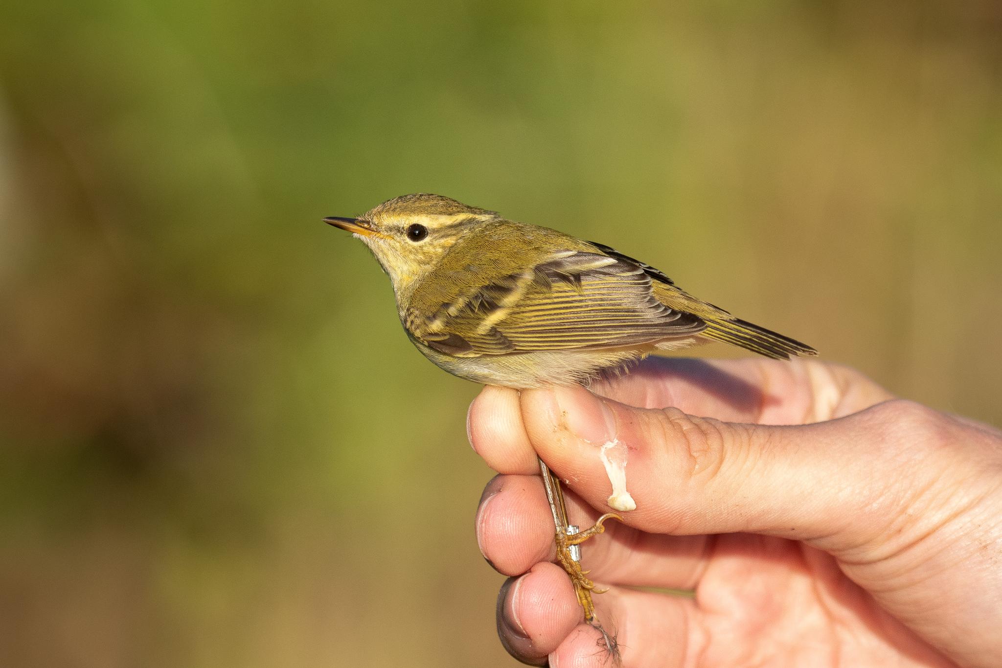 Beskrivelse: Yellow-browed Warbler trapped and ringed at Gedser Odde, 03/10/2022.
