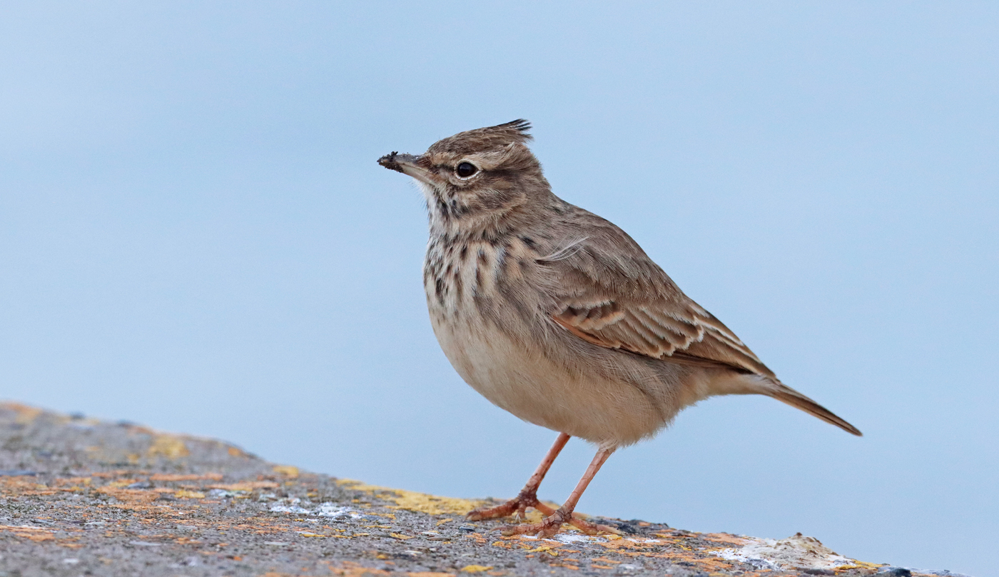 Beskrivelse: Var i dag heldig at se de sandsynligvis de tre sidste Toplærker i Danmark, samlet på tværmolen i Hirtshals.