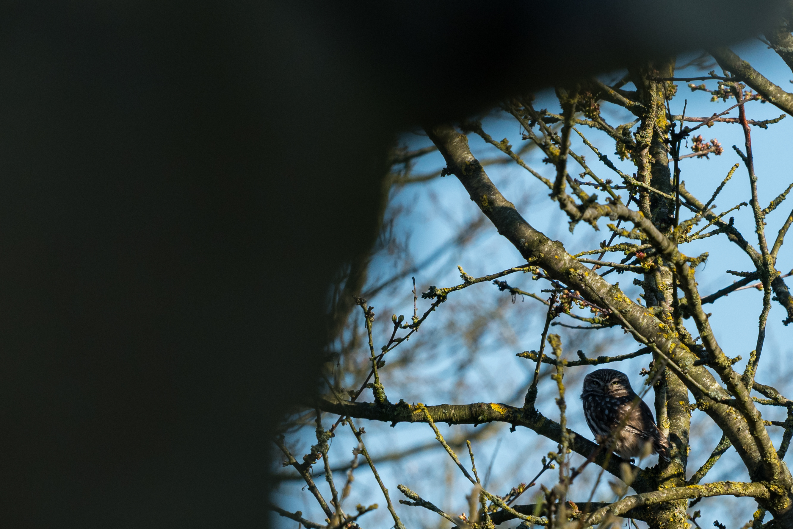 Beskrivelse: Enlig kirkeugle i privat have et sted i sydvestjylland