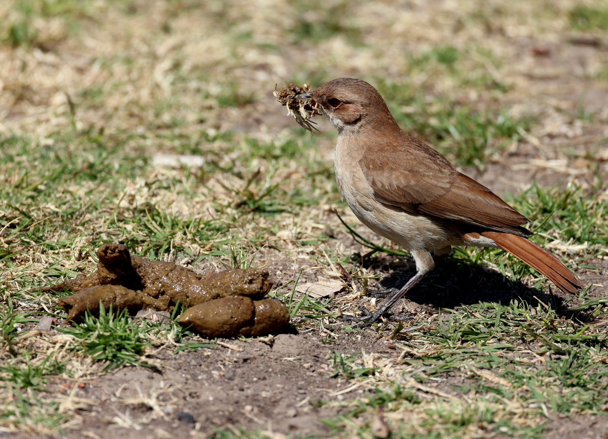 Titel: The Hornero’s are normally building their oven-nest with wet soil and clay….. but some parents are as it seems here happy with a shithouse