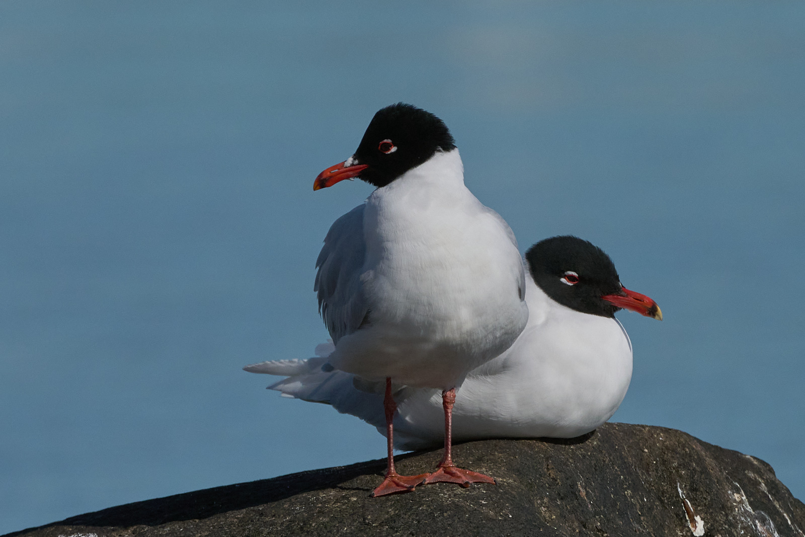 Beskrivelse: Hunnen til venstre lidt mindre og med spinklere næb end hannen til højre.