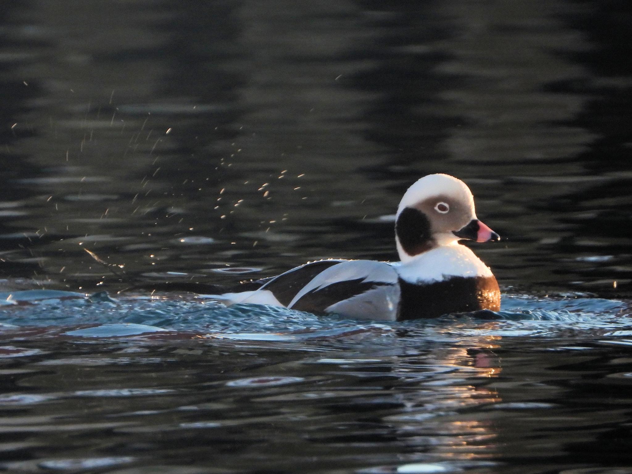 Beskrivelse: Hannen slår med halen på vandet for at imponere hunnerne.