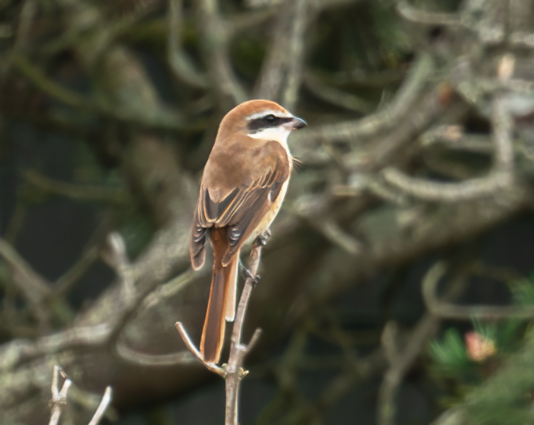 Beskrivelse: Den brune Tornskade rastede 2 gange i hybenkrattet bagved Sdr. Strandvej 14A og den gamle blå traktor. På DOFbasen er fuglen aldersbestemt til at være lige fra IMM, AD , 1K+ til 2K+.