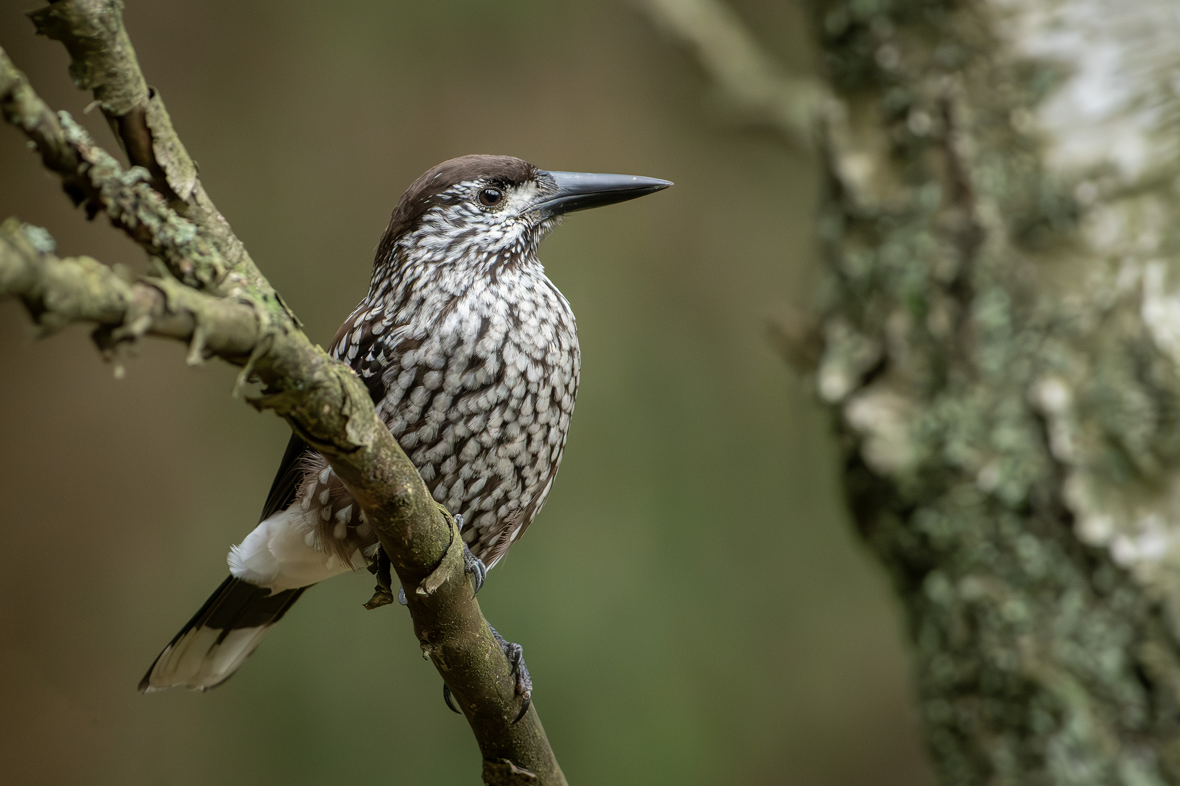 Nøddekrige (Nucifraga caryocatactes) Spotted Nutcracker -