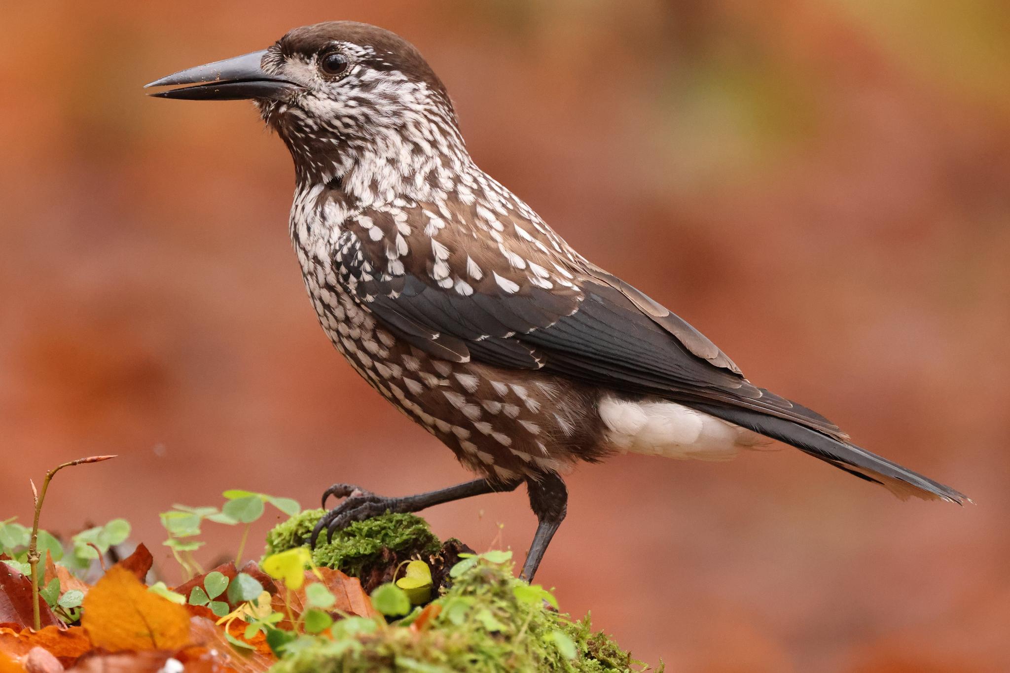 Nøddekrige, Tyndnæbbet (ssp. macrorhynchos) (Nucifraga caryocatactes) Spotted Nutcracker macrorhynchos -