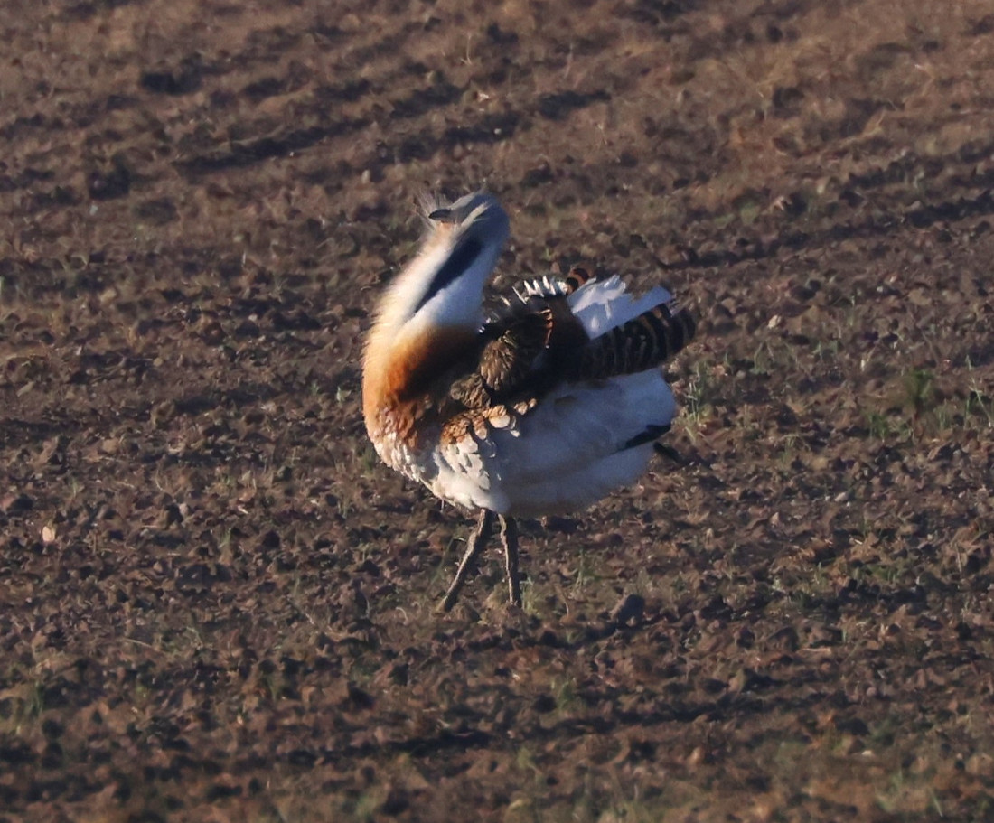 Beskrivelse: Beskrivelse: Så lykkedes det endelig at komme på rimelig fotoafstand til stortrapperne. De viste deres parringsdans i den spæde morgensol.