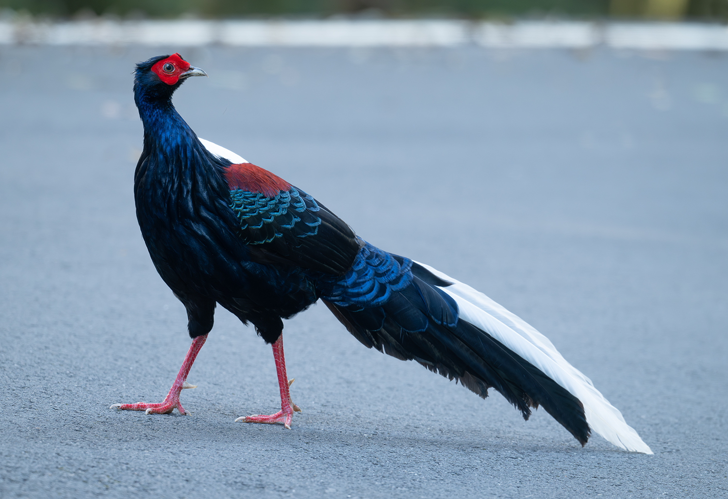 Titel: Swinhoesfasan,han ved at krydse vejen.