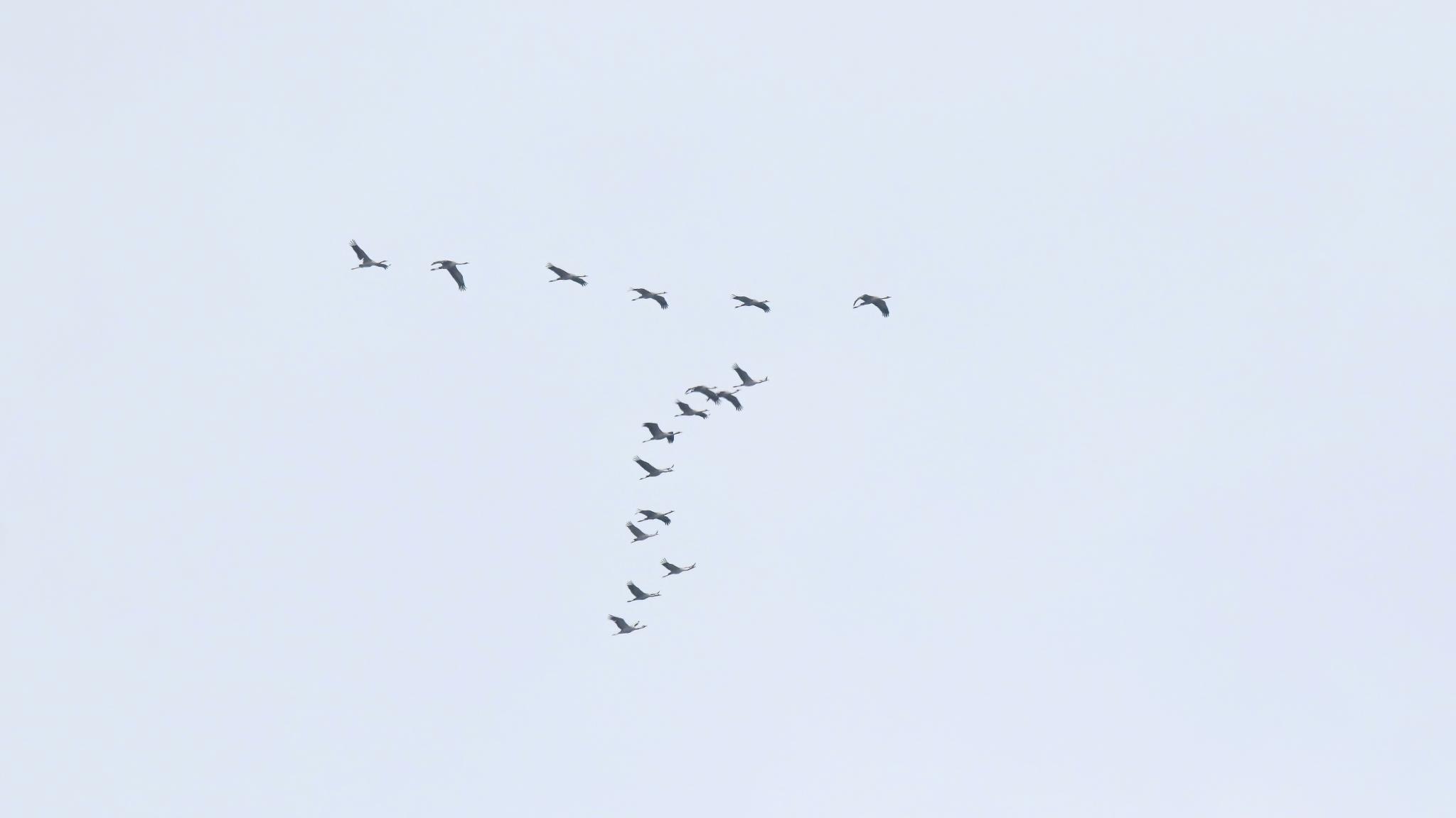 Beskrivelse: Trækkende med traner. Prærietranen er nummer fire fra bunden.