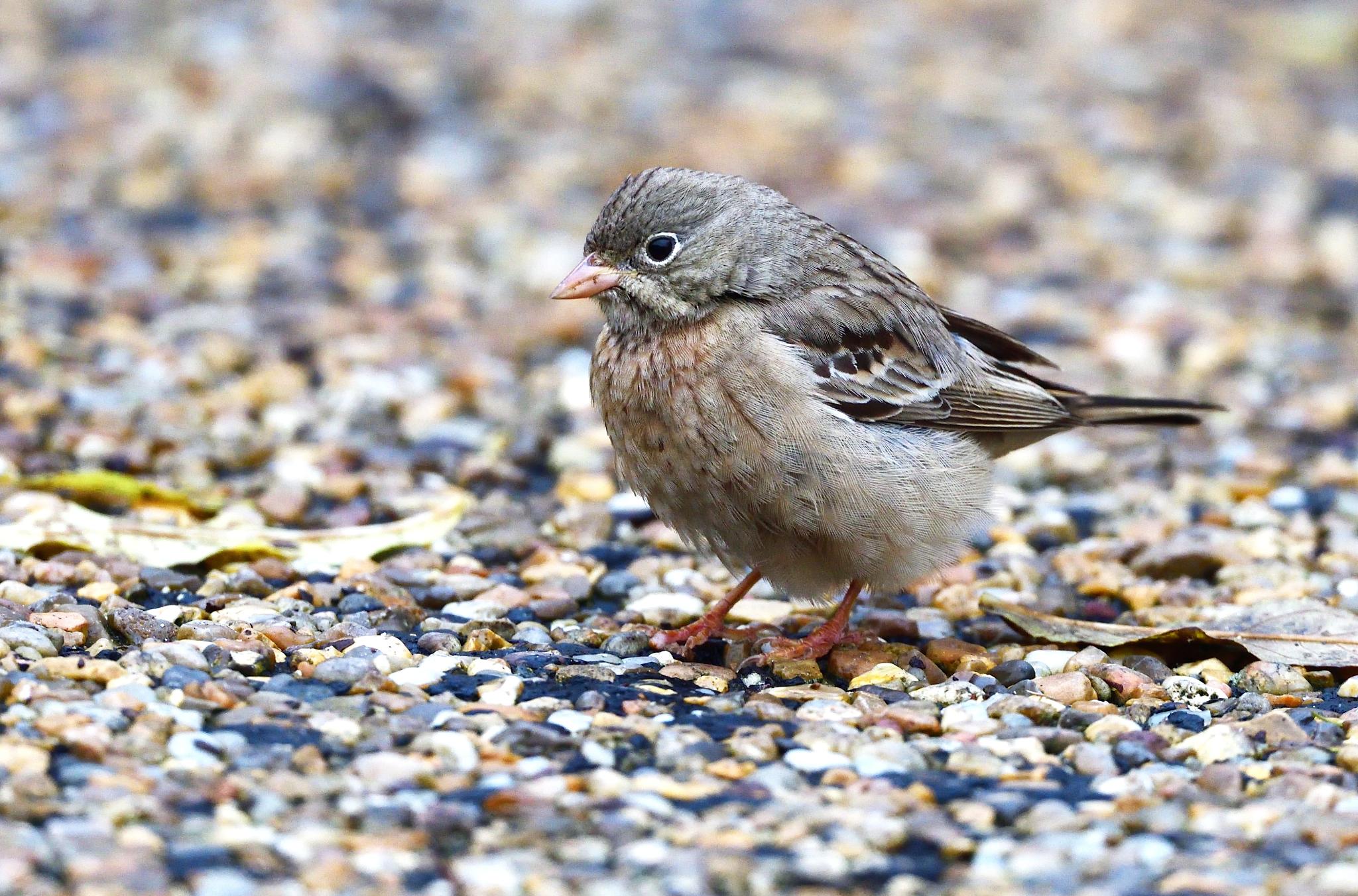Beskrivelse: Det gav mindelser til krognæbben i Utterslev Mose i efteråret 2004, da bjerghortulanen kom helt tæt på og virkede ganske tillidsfuld fouragerede på stien.