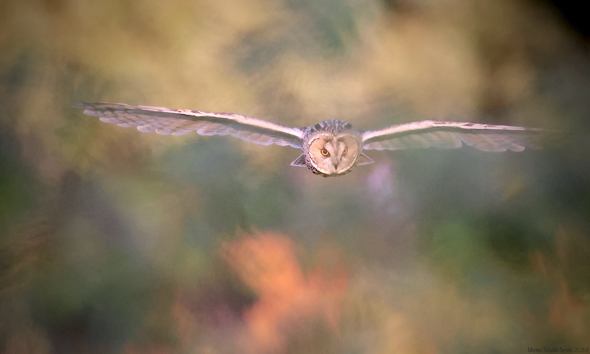 Beskrivelse: Fotograferet gennem en Rosenbusk hvor kameraet stadig følger Uglens øjne.