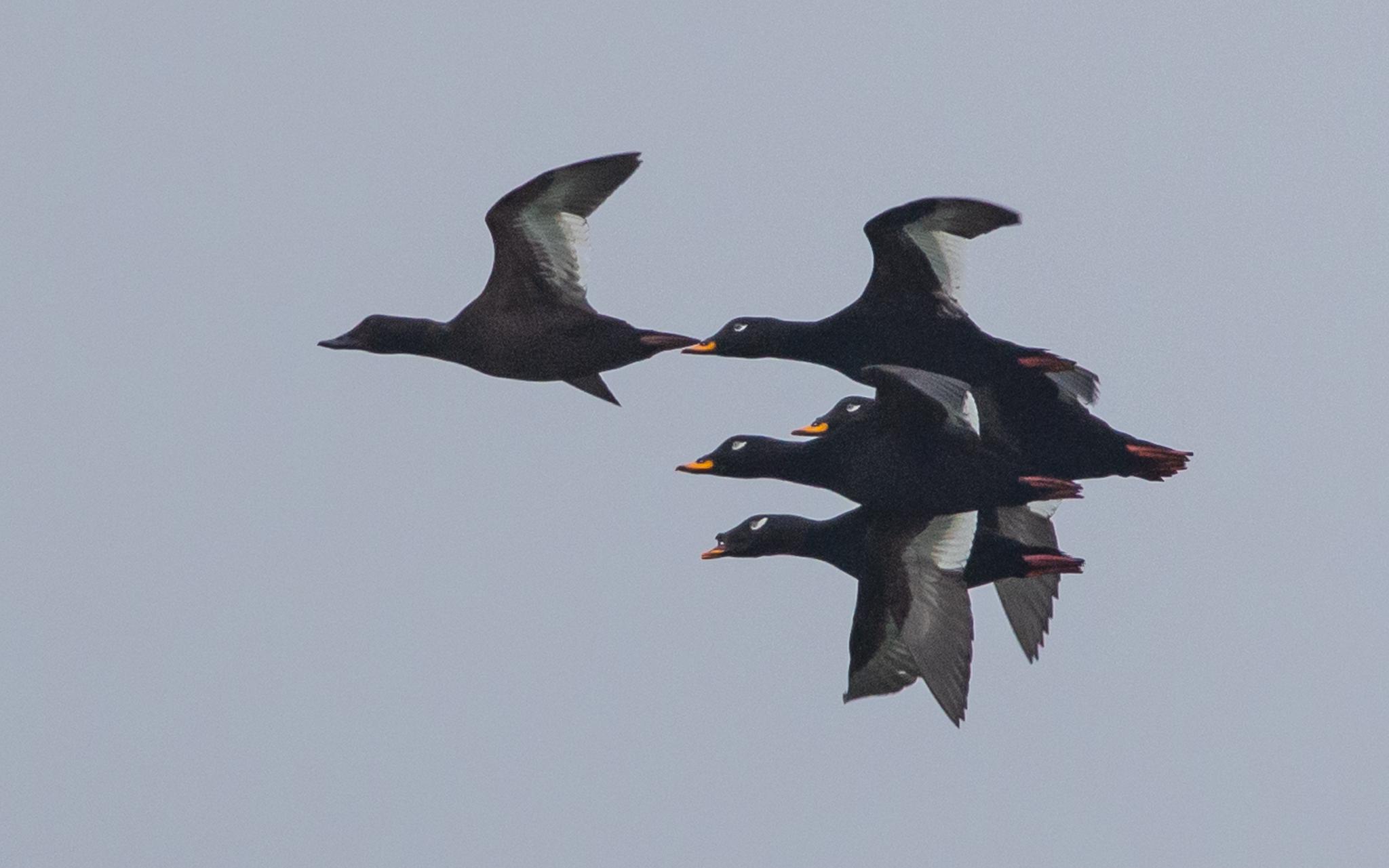 Beskrivelse: Sibirisk fløjlsands karakteristiske hovedprofil er måske det kendetegn, som er lettest at se hos en forbiflyvende fugl i en flok fløjlsænder?