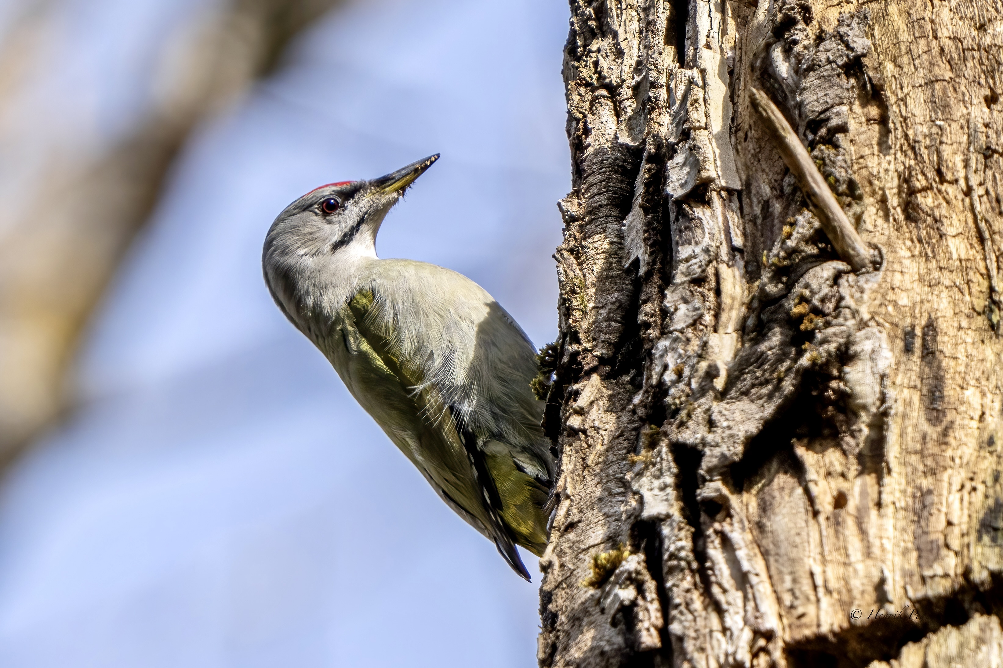 Gråspætte (Picus canus) Grey-headed Woodpecker -