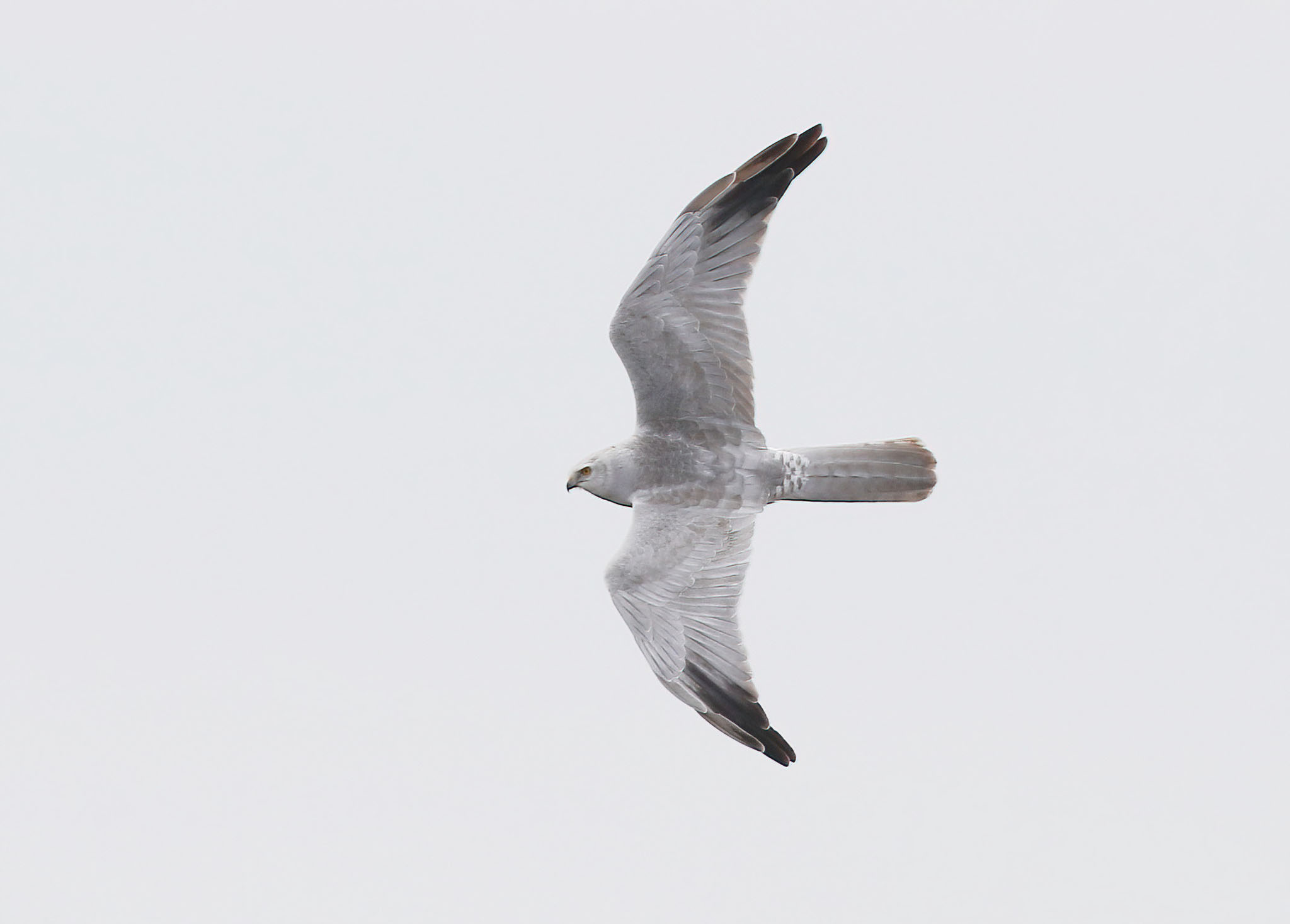 Beskrivelse: Næsten udfarvet han. Har dog bruntonet tværbånding på yderste halefjer.