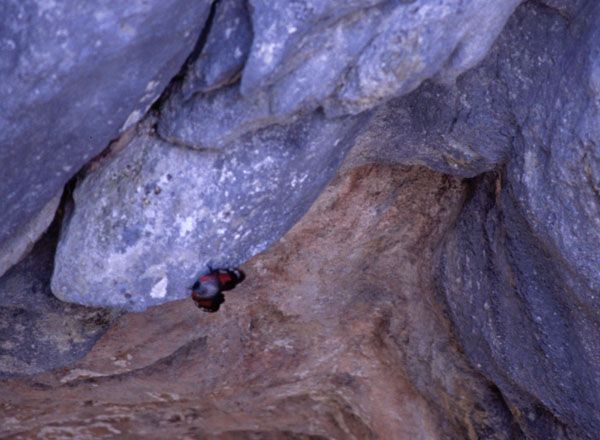 Beskrivelse: After one hour near the entrance to the second tunnel in the Hecho Valley, things did not look very well for seeing the enigmatic Wallcreeper. ABK, Kenneth Bach Christensen, and Kent Olsen were eating tuna sandwiches when we suddenly heard a scream from Kim Aaen. We all knew what that meant and we threw everything we had in our hands including the sandwiches and ran over to Kim Aaen who pointed on the cliff on the other side of the narrow stream that runs through the valley. And there it was flittering among the rocks - the enigmatic Wallcreeper.