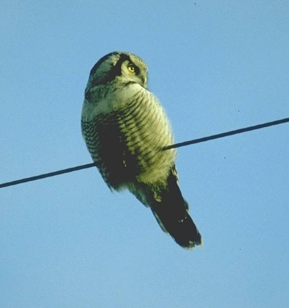 Beskrivelse: One of many Northern Hawk Owls during the invasion in the winter 1983/1984. More than 300 birds were recorded during the winter and it is without comparison the biggest invasion ever in Denmark.