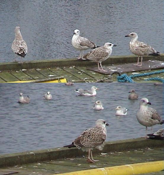 Beskrivelse: Behind the ssp. michahellis a 1cy ssp. cachinnans is seen (another uncommon gull).