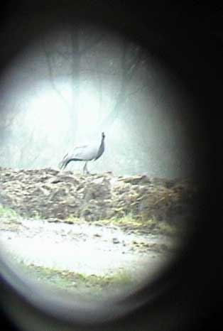 Beskrivelse: A very surprising bird on a Danish field in midwinter! This bird wore a ring and is surely an escapee. The ring could only be seen at a distance less than 150 meters. The bird was probably first seen January 31st when a "crane" flew south only a few kilometers to the north of the field where it was found February 2nd.