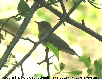 Beskrivelse: This bird was one out of three Greenish Warblers which where found singing in the early morning at Kongelunden near Copenhagen. The last day’s easterly wind has resulted in a small influx of this species in Denmark following several years with only a few records.