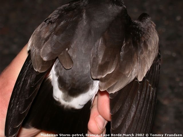 Fuglen ser ud til at have en ret smal overgump for arten, men det skyldes nok fjerenes placering. Man ser i hverfald de smalle sorte "skæl" nederst i overgumpen, som ikke ses hos Stor Stormsvale - samt den lyse inderdel på den yderste halefjer. Dtte er håndkarakterer, der er reele nk, men naturligvis næsten umulige at se i felten.
