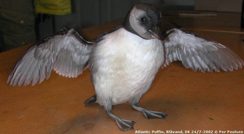 Beskrivelse: This 1cy Atlantic Puffin was picked up at the beach by a German tourist and brought in to care.