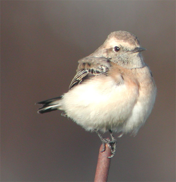 Beskrivelse: 1cy Pied Wheatear found by Geir Kristensen on the 7th of November. <a href='pictures.php?id=showpicture&picture_id=867'>Click here</a> for another picture of the bird.