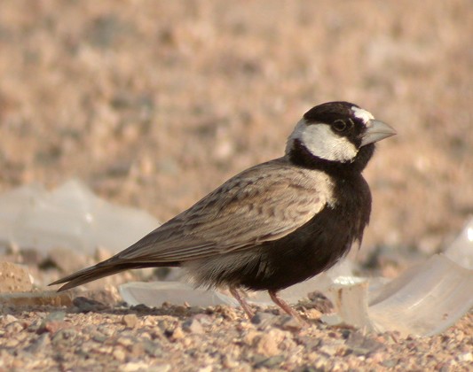 Beskrivelse: Stor var overraskelsen da vi knapt var kommet ind i Bir Shalatein førend vi stod og kiggede på en flok sortissede lærker bestående af ca. 12 individer, heraf flere ivrigt syngende. En art som ifølge litteraturen skulle forekomme her på kanten af VP’s udbredelse men som kun meget få har haft held med at få at se.
