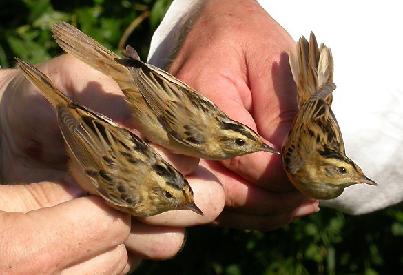 Beskrivelse: Fanget og ringmærket af Peter Flansmose og John Kyed. Sluppet kl. 9.00. Første fund af 3 fugle sammen i Danmark. Lokaliteten er DK's bedste for Vandsanger da der nu er ringmærket 6 individer på stedet.