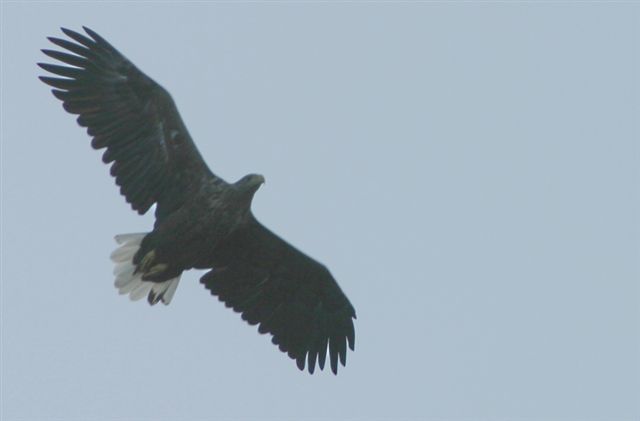 Adult Havørn, nok en yngre adult. Bemærk hvid hale, gult næb og lyst hoved - samt de afrundede armsvingfjer. Der ser ud til at være lidt lysplettede partier nær vingeforkanten, hvilket kunne være rester af immaturdragterne. Desuden ser øjet ikke stikkende gult ud og det er lidt mørkt i halen, hvilket igen underbygger indtrykket af, at fuglen ikke er en olding på 10k+