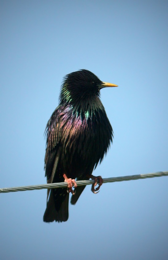 Dette foto viser på smukkeste vis, hvor kraftigt purpurskinnende østlige Stære kan være. Nogle kunne sikkert finde på at relatere dem over mod Ensfarvet Stær fra Tane Sø, men dén går ikke: Fuglen har fortsat de for Stære typiske lyse fjerspidser på undergumpens fjer, omend de hos de østlige fugle er smallere, mere i stil med kraftigt tegnet Ensfarvet Stær. Desuden er der lyse rande på dæk- og svingfjer - men her skal man se fuglene fra en anden vinkel end her.