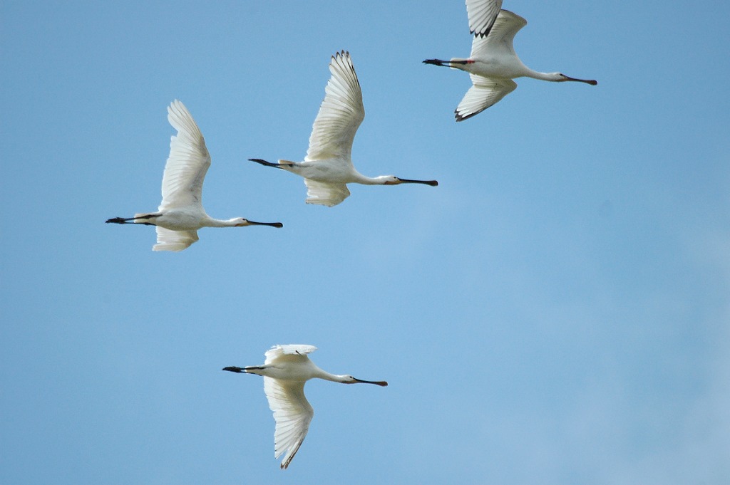 Bemærk i øvrigt at den forreste ungfugl ser ud til at være farvemærket med en rød ring på højre tibia.