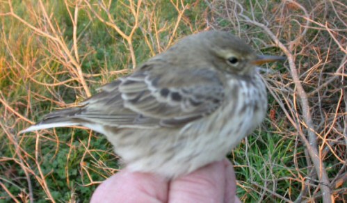 Beskrivelse: Dear friends, I would like to ask you provide these pictures of pipit, caught for ringing at Pape bird station (Latvia) on 15.october 2004, to the specialists or / and birdwatchers, who can separate rock and water pipits in the field. We (Latvian birders) have no expirience with water pipit and we want to know - how you do it and what a species is on the pictures. Please, send your possible comments to Maris.Jaunzemis@apollo.lv or eastbird@latnet.lv Thank you in advance Maris Jaunzemis Latvia