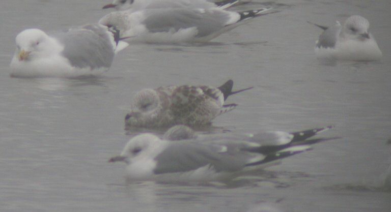 Stort set ufældet ryg med enkelte indslag af grå fjer. Undergump med meget tydelig sort "barring". Bug + bryst smudsig brun. Næbbet lidt længere end ssp. canus. Har ikke kunne finde nogle billeder af 1. vinter ssp. heinei på nettet. Fuglen blev også set dagen efter af KO, altså den 17/2.
