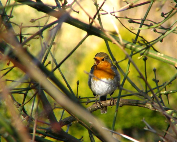 Beskrivelse: Her er så lige et billede af en forårskåd rødhals, der af fuld hals